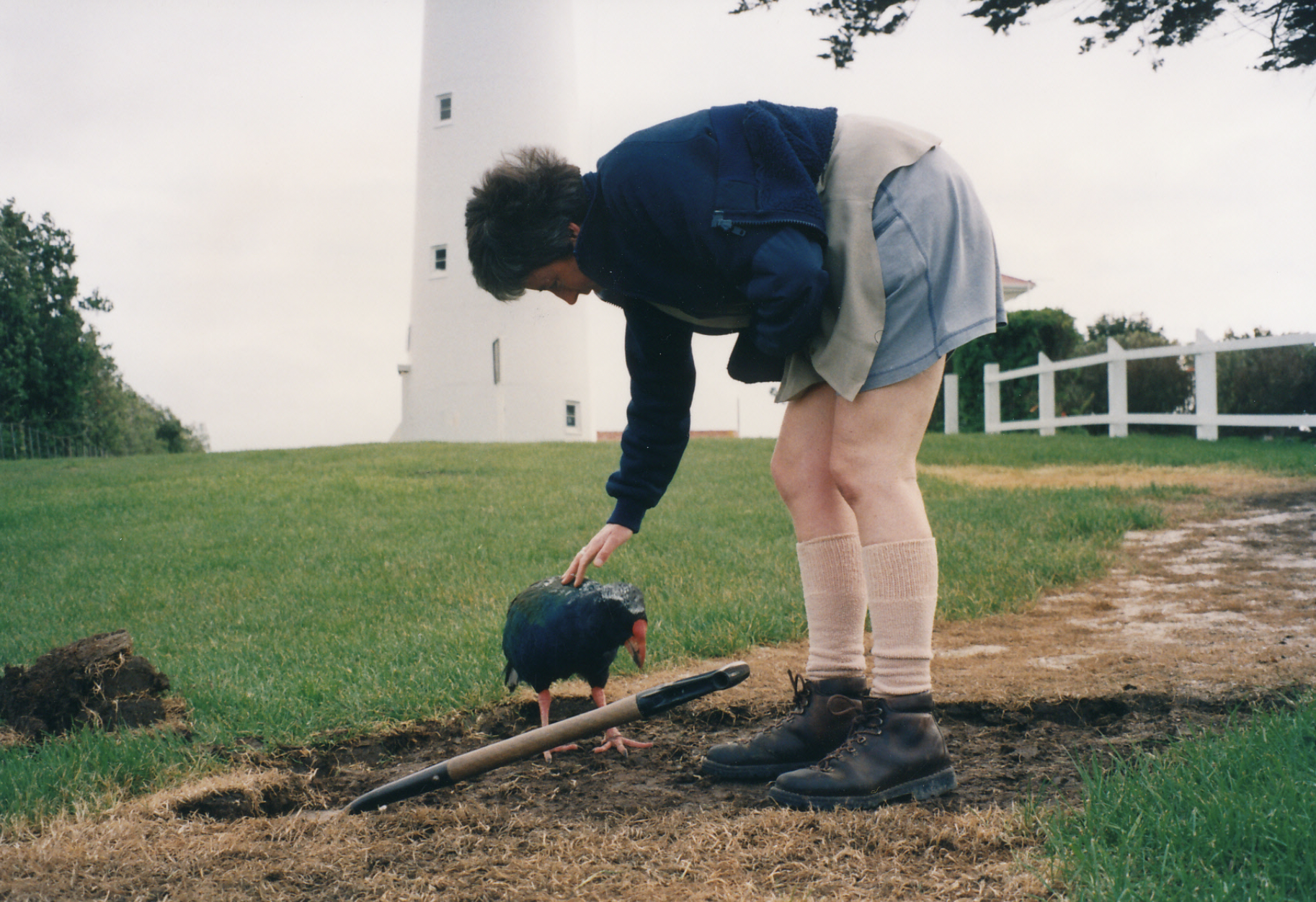 The Life and Time of Mr Blue the TakahēFrom the Supporters of Tiritiri Matangi Archives. Bulletin 28, Summer 1996/97. Editor Peter LeeFor many visitors, Mr Blue was Tiritiri. No visit seemed complete without a sight of the ‘old man’ mischievously investigating visitors around the nursery. Somehow, he always seemed almost human in his fearlessness, his curiosity and his desire to have his chin scratched. It was difficult at times to remember that he in fact was a representative of one of the world’s rarest species. Yet he was… Mr Blue’s story started as an egg collected from the Murchison Mountains in Fiordland and hatched at Te Anna on 12 December 1984. From there, he was transferred to Maud Island – where his inquisitive nature soon showed up, as the photos show. His fame, though, truly arrived when he was chosen in 1991 as one of the two takahēs to initiate DoC’s policy of enhancing the species’ survival by building a population of takahē on Tiritiri. The release would herald a number of firsts – the first onto an ‘open’ island, and the first outside its hitherto-accepted ancestral range. Would it work? And who would pay the cost? Fortunately for Tiritiri, funding was made available through the generous sponsorship of Du Pong New Zealand. This, and subsequent donations by Du Post, made it possible to implement the programme. Many of us…